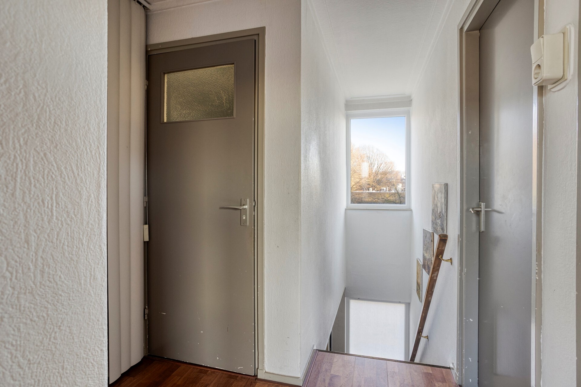 De overloop geeft toegang tot drie slaapkamers, een kleine ruimte met de cv-installatie (Nefit, eigendom, 2013) en de badkamer. De slaapkamers en overloop zijn voorzien van een laminaatvloer.