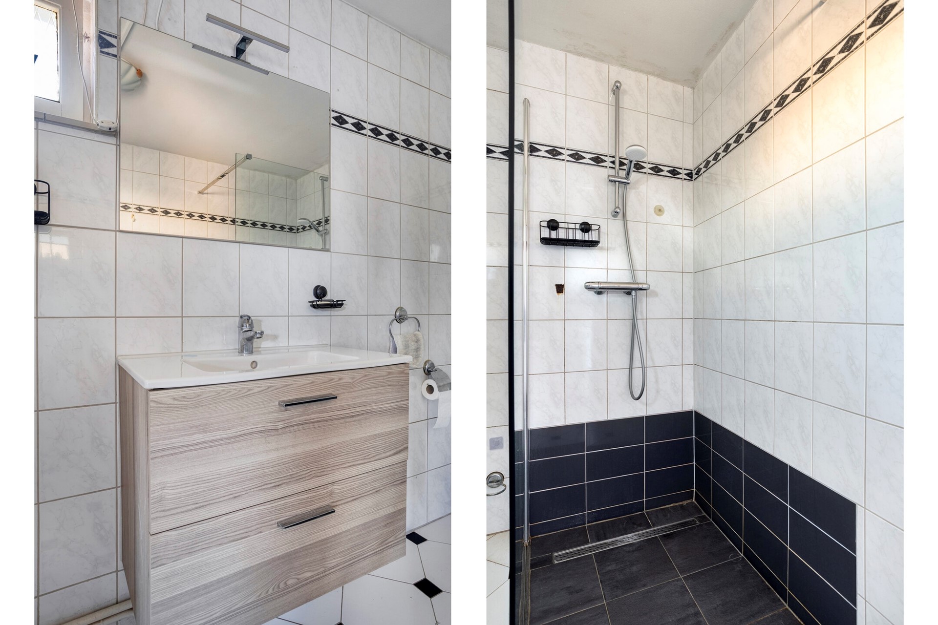 De badkamer is uitgerust met een inloopdouche, wastafel, tweede toilet en mechanische ventilatie.
