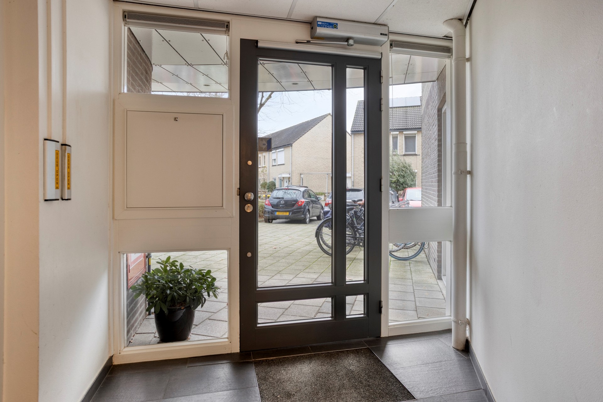 Gezamenlijke entree met bellentableau, intercominstallatie, brievenbussen, trappenhuis en lift. Tevens is hier de inpandige berging gesitueerd die ca. 3m2 groot is.
