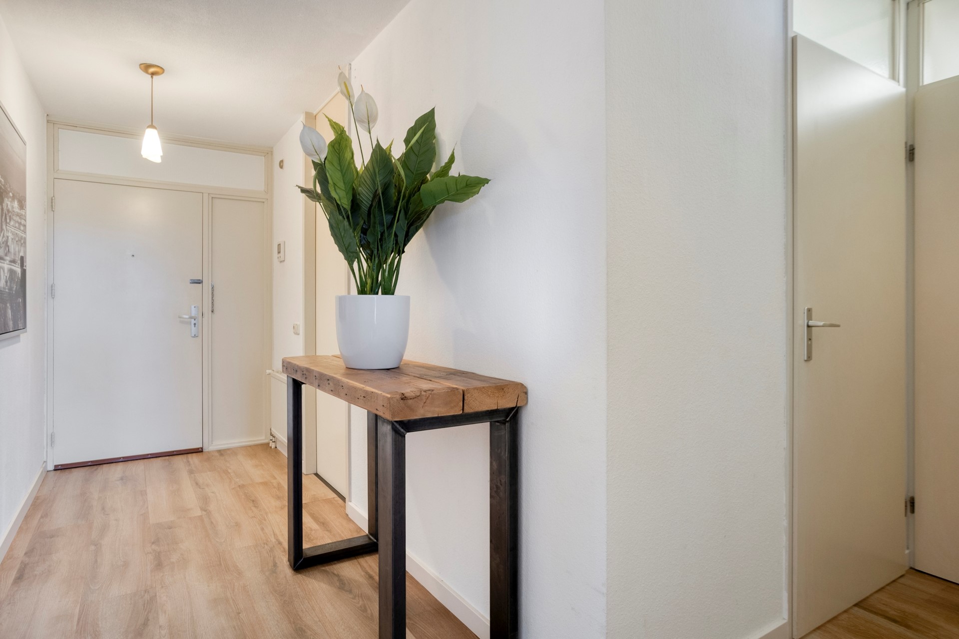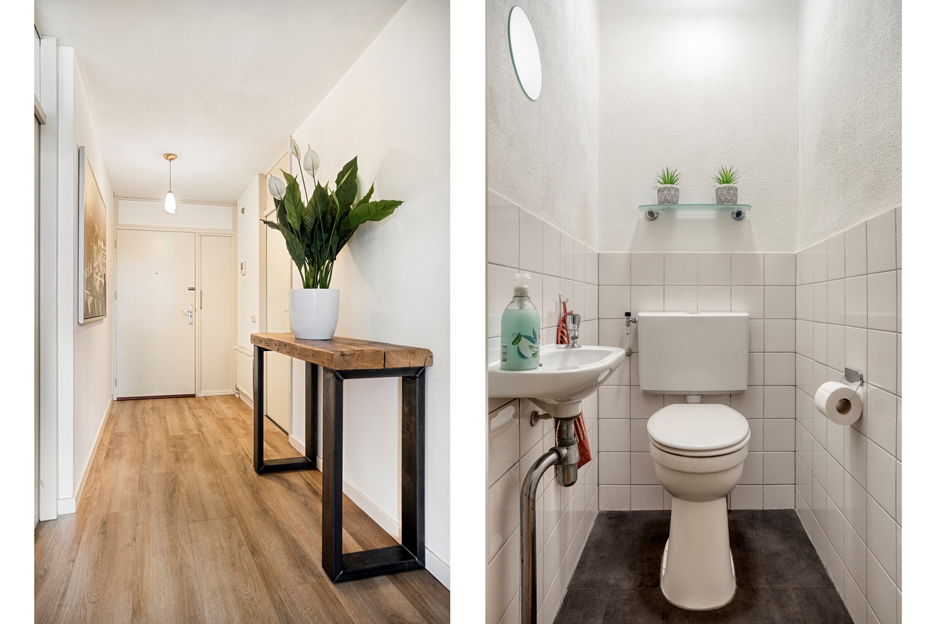 In de hal voorzien van een laminaatvloer die is doorgelegd in alle ruimtes, bevindt zich de video-intercom en is er toegang tot alle vertrekken.