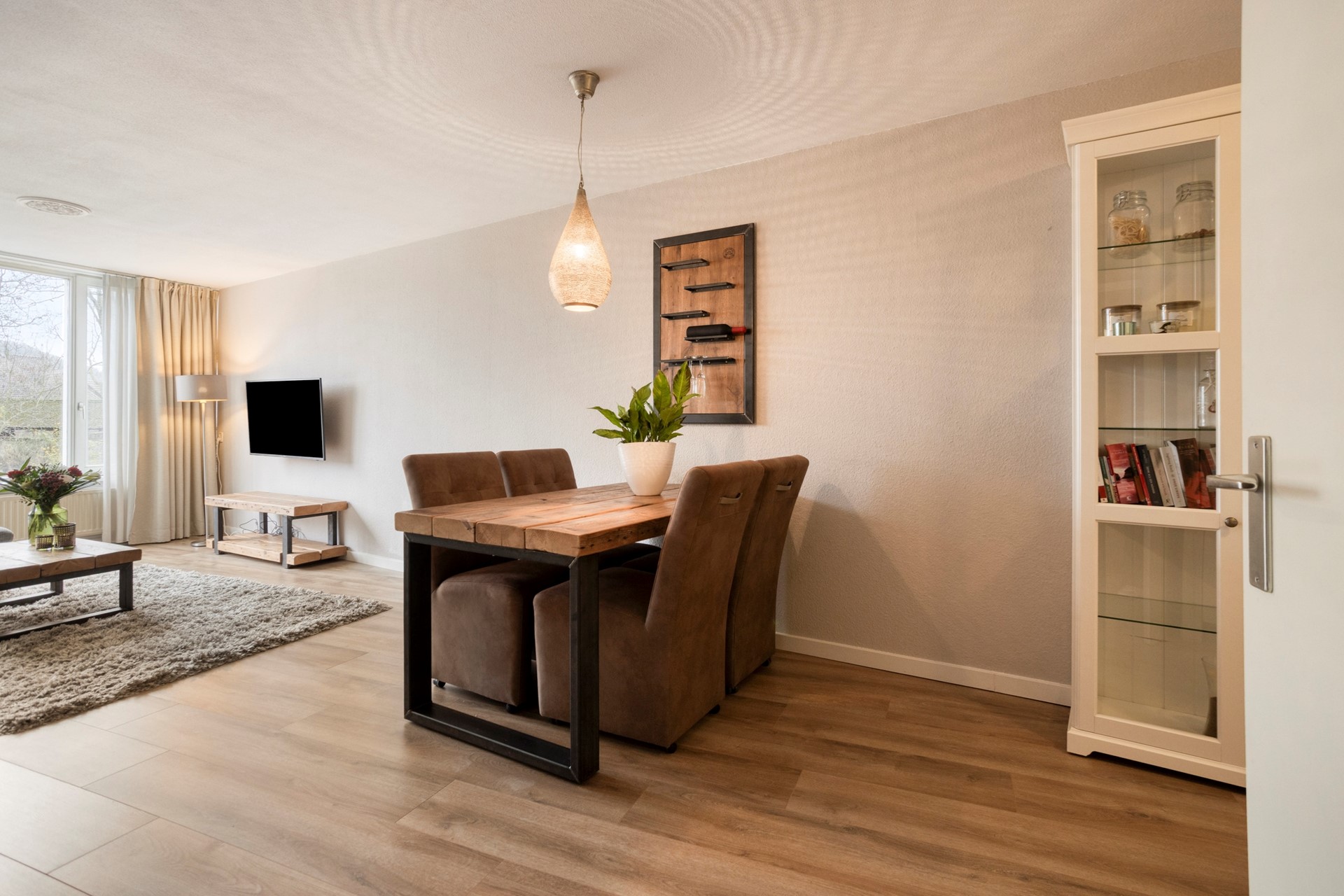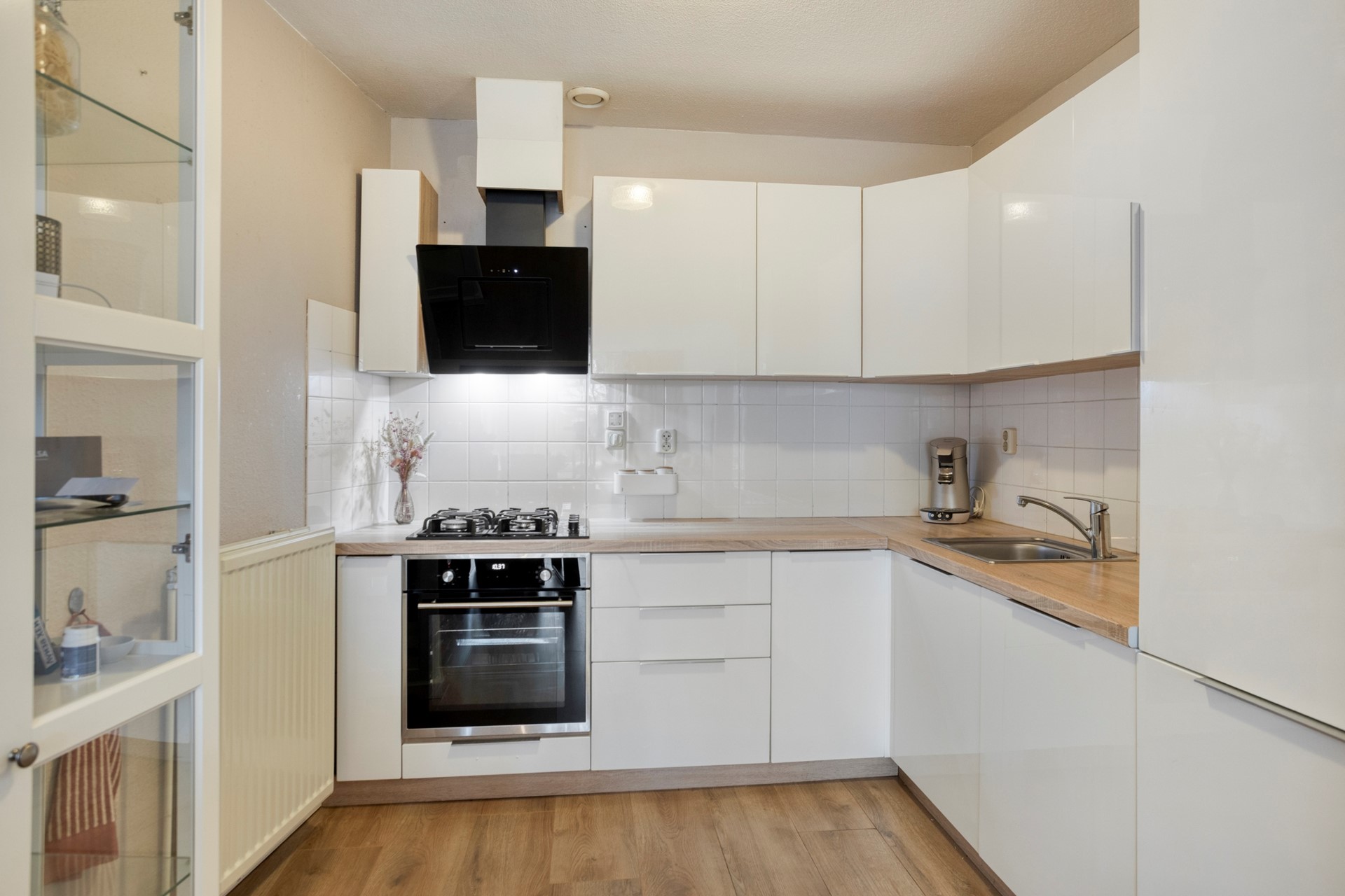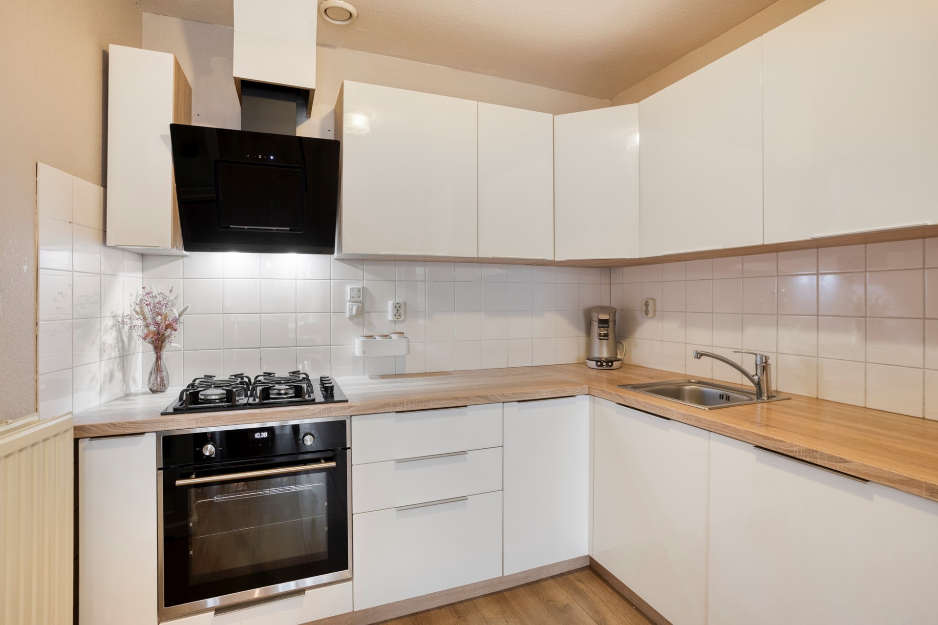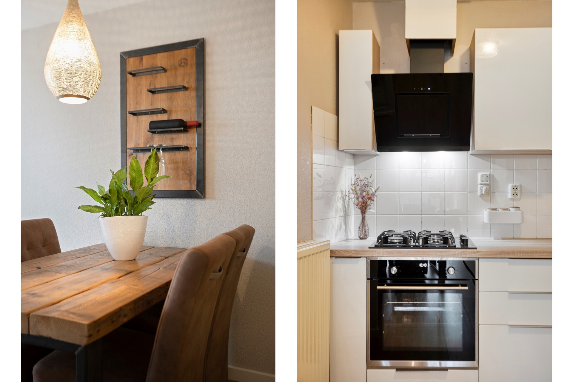 De open keuken is volledig vernieuwd en beschikt over diverse apparatuur: 4-pits gaskookplaat, wasemkap, oven, vaatwasser, koelkast en meer dan voldoende opbergruimte.