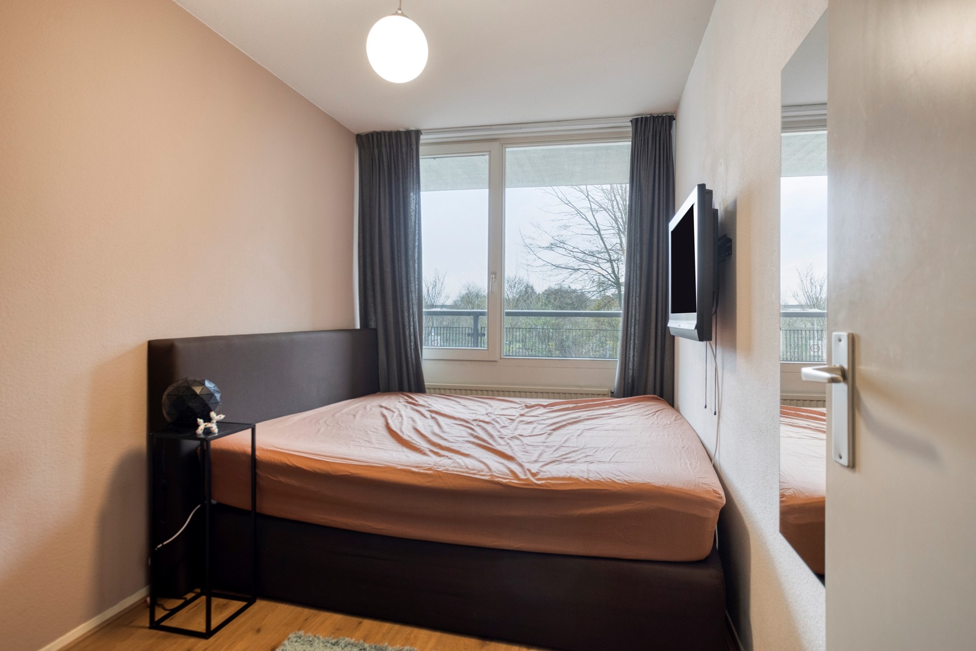 Beide slaapkamers (12m2 en 9m2) zijn voorzien van een laminaatvloer. Vanuit de grootste slaapkamer is er toegang tot het balkon (8m2). Het balkon is gelegen op het zuidwesten en biedt net zoals de woonkamer uitzicht over de buurt. Er is voldoende ruimte om heerlijk buiten te vertoeven.